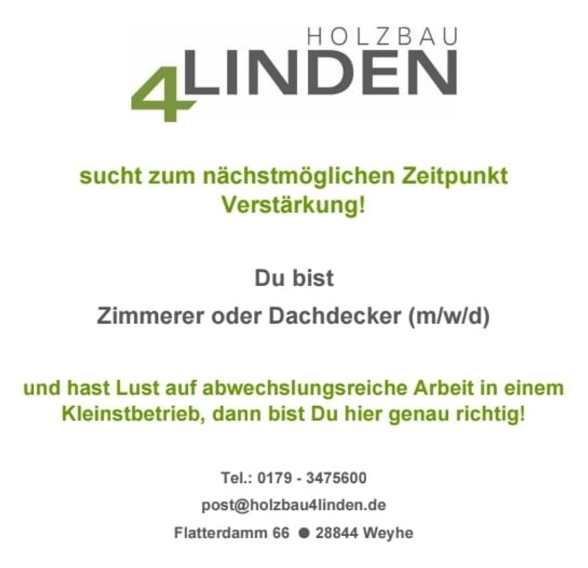 Hey Zimmerer- bzw. Dachdeckergesellen, ihr seid auf der Suche nach Veränderung und sucht nach vielfältiger Arbeit in der Region Weyhe und umzu.